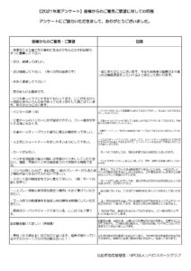 【2021年度アンケート】皆様からのご意見ご要望に対しての回答